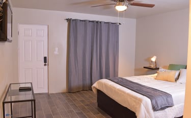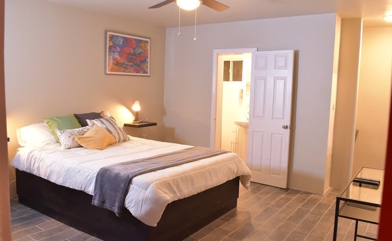 "Cada departamento cuenta con una habitación elegantemente presentada y ofrecemos un servicio de limpieza dos veces por semana para asegurar que regreses a un espacio siempre impecable y acogedor."