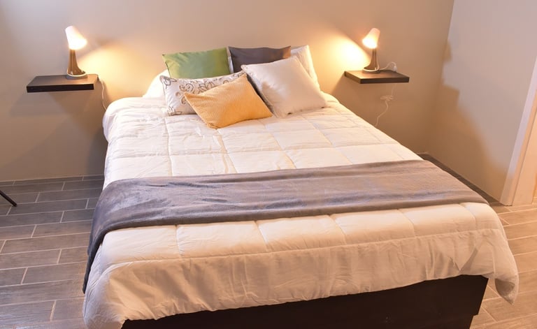 "Cada departamento cuenta con una habitación elegantemente presentada y ofrecemos un servicio de limpieza dos veces por semana para asegurar que regreses a un espacio siempre impecable y acogedor."